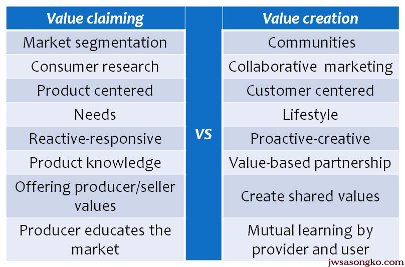Any effort to understand collaborative marketing requires an understanding on collaborative inquiry. It is not just another model of marketing. It’s a different framework of marketing. I identified at least eight key points in collaborative marketing, which distinguish it from previous marketing framework. Values, in today’s increasingly complex society, is a more of creation than claims. Values are result of learning and negotiation, and therefore it is a dynamic state and consistently changing. The power of consumer and producer are getting even. Values are more and more resulted from a continuous and dynamic negotiation between the two.