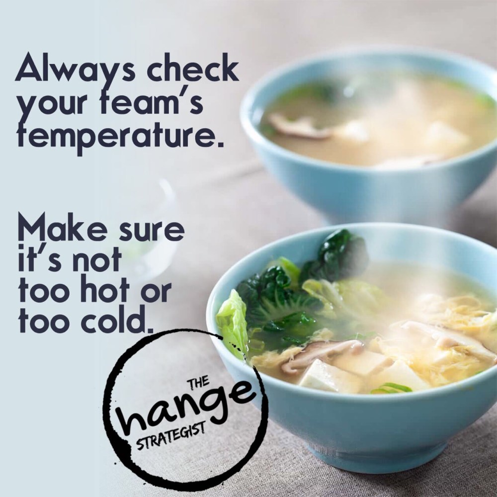 A cold team will have low energy. A boiling team will disintegrate. The leader of the team must sustain the right heat. This is the simple the recipe of a good team.