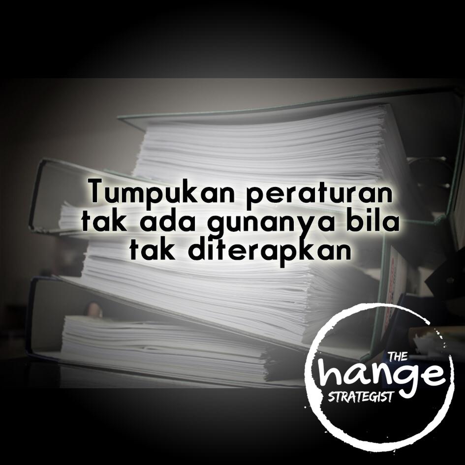 Ini semua membuat kebiasaan kerja efektif tidak ada dalam kenyataan operasional organisasi, dan peraturan tak ada dalam penerapan.
